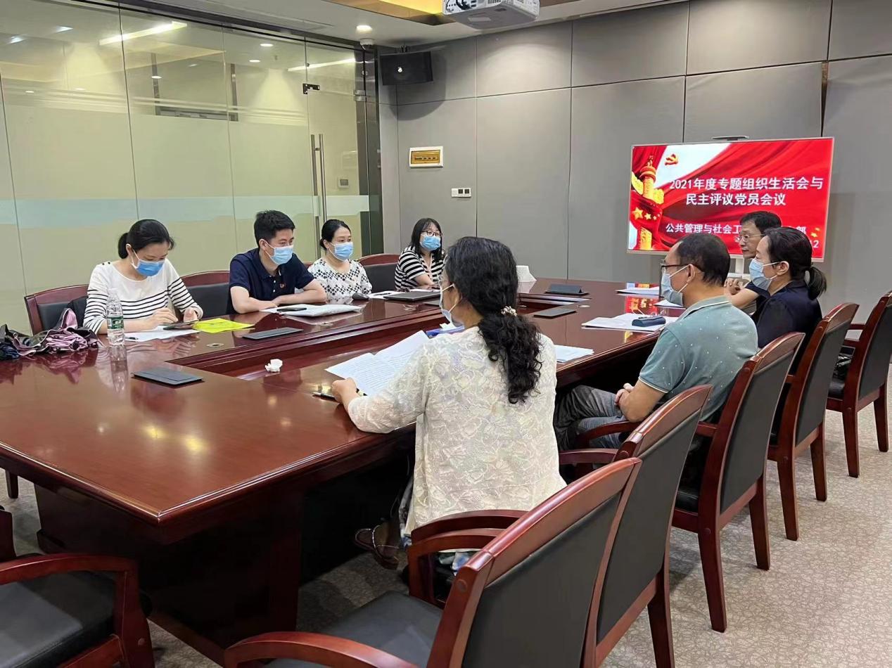 5月12日下午,公共管理与社会工作教师党支部在松山湖大学创新城召开2021年度组织生活会和开展民主评议党员工作。会议由党支部书记杨少星主持,杜应发、朱晓红及全体党员参加了会议。