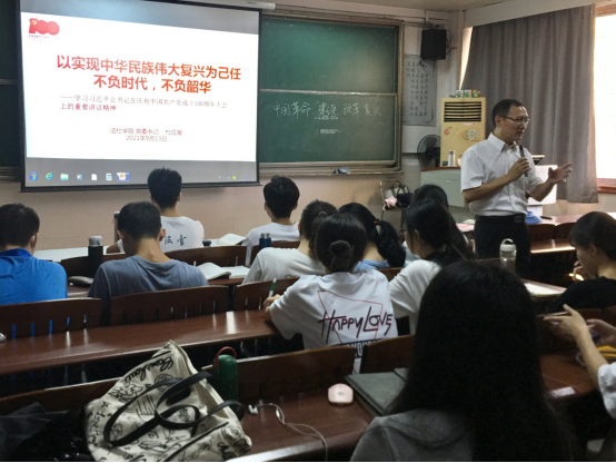 9月13日,公司党委书记杜应发为2020法学1班、2020法学2班、2020法学(知识产权)1班90多位同学上了一堂题为“以实现中华民族伟大复兴为己任不负时代,不负韶华”的思政第一课,与同学们共同学习了习近平总书记在庆祝中国共产党成立100周年大会上的重要讲话精神。