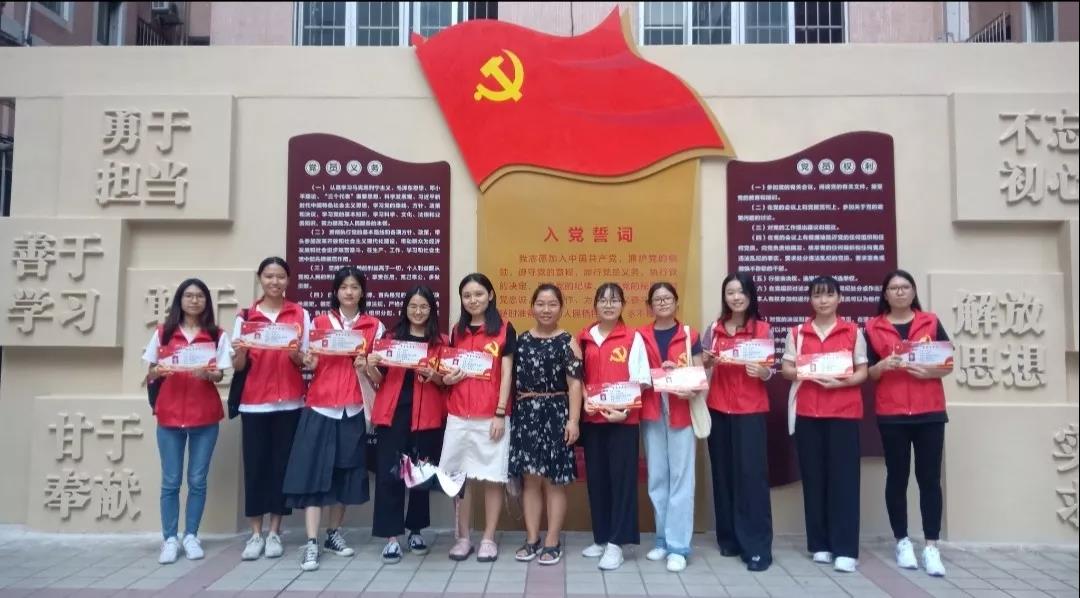 下午三点的太阳格外炙热,支部党员新生入党宣讲热情丝毫不减。辛勤的汗水顺着脸颊而滑落,忙碌的身影满载着甘甜的清茶奔波于绿荫间;