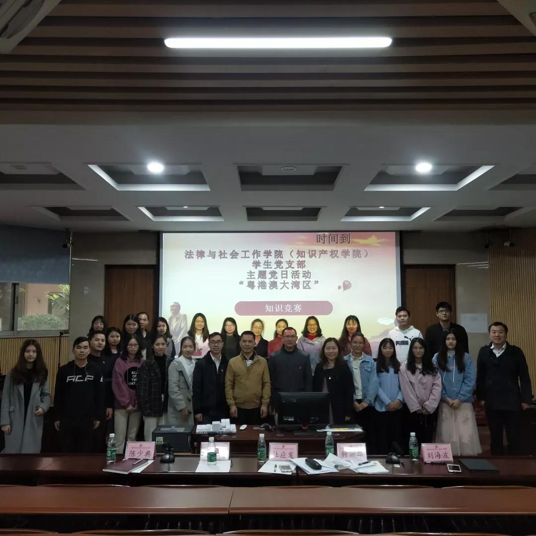 2019年3月7日,williamhill威廉希尔员工党支部在莞城校区模拟法庭开展主题为“粤港澳大湾区”知识竞赛的党日活动。总支书记杜应发、副书记丘永辉、支部书记钟丽华、辅导员刘海波、专职组织员陈少典及全体员工党员和部分入党积极分子到场参加活动。