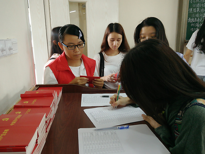 同学们有序签到
