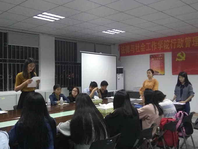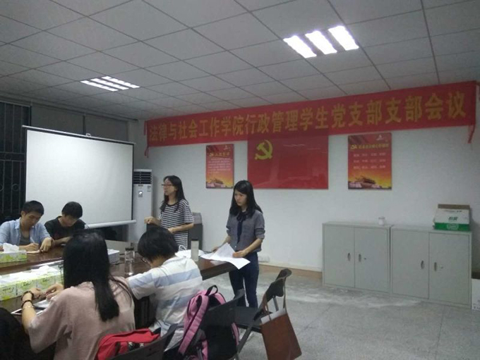 大会的第一项内容是讨论李柔娜、叶燕苹等5名发展对象的入党事宜。首先是发展对象作自我介绍,接着其入党介绍人作情况汇报,最后由与会正式党员以举手的形式投票表决。第二项内容是邱可荣老师与其他与会人员就这学期的党日活动应如何开展这个问题进行讨论,与会人员各抒己见,讨论非常热烈。