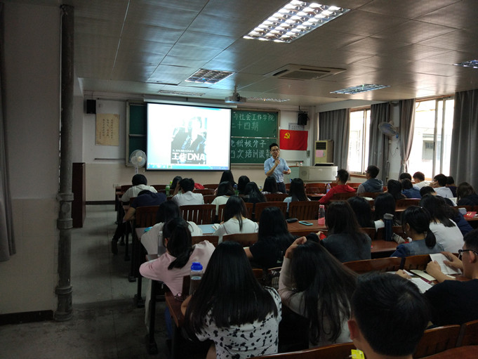 4月27日下午2:30,williamhill威廉希尔分党校第二十四期第四次入党积极分子培训课在莞城校区课室1408顺利举行。本次培训课的主讲人是员工罗志凯师兄。应到积极分子89人,实到77人。