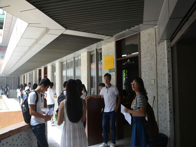 面试场外,新生们有序地等候