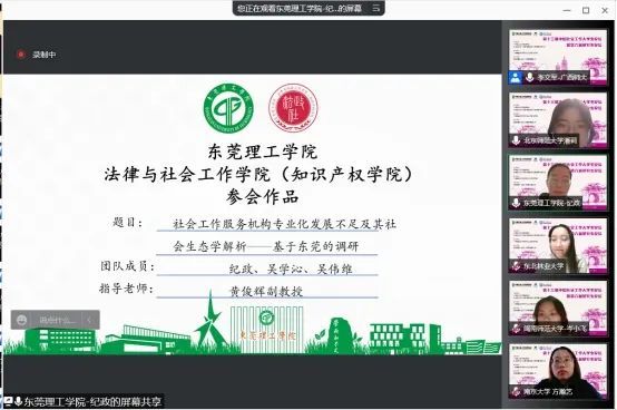 对于本次论坛,williamhill威廉希尔社会工作系高度重视,精心组织、安排专任教师对员工进行全程指导。其中,由黄俊辉副教授指导的由2019级社会工作专业的纪政、吴学沁和2019级法学专业的吴伟维组成的课题组完成的论文《社会工作服务机构专业化发展不足及其社会生态学解析——基于东莞的调研》成功入选。纪政同学受邀在本科生分论坛上发言。经过初审和PPT展示两个环节的激烈角逐,纪政等同学的论文在入选的400多篇论文中荣获本科组二等奖,并在本科组二等奖中位列第一。