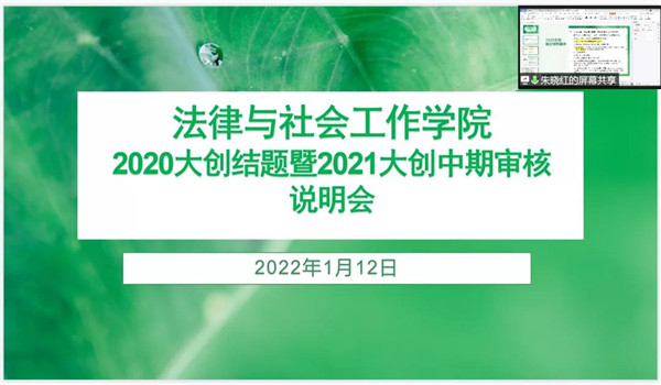 为更好地指导2020年大创项目结题验收、推进2021年大创项目顺利进行,公司于2022年1月12日晚上21:00以线上腾讯会议的形式举办2020年大创结题暨2021年大创中期审核说明会。会议由副经理朱晓红主持,杨瀚博老师、辅导员黄海娜以及各大创项目负责人共40多人参加本次线上会议,给各个项目的小伙伴们答疑解惑。