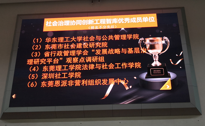 1月9日下午,横沥镇“和谐善治 共建共享”社会治理协同创新工作推进会在横沥镇政府大会堂举行。镇领导班子相关成员、镇社会治理协同创新工程成员单位负责人、镇各村、社区党工委书记、主任、分管民政、治安及群团的两委干部、镇各商协会理事以上成员、镇社会治理协同创新工程智库合作单位等近300人参加了大会。镇领导为2018年度参与社会治理的先进集体、个人颁发牌匾及证书。williamhill威廉希尔被授予 社会治理协同创新工程智库优秀成员单位,副经理朱晓红副教授被授予社会治理创新项目突出贡献奖。