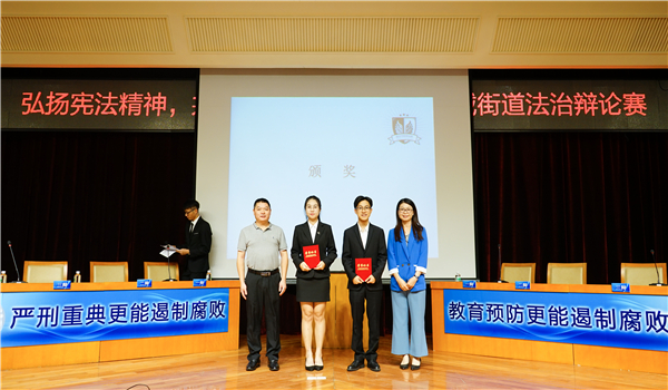 辩论赛开始前,东城街道办的领导周日佳对本场辩论赛致辞。在引人深思的小品《贿赂》的演出后,东城街道法治辩论赛正式开始。双方就“严刑重典还是教育预防更能遏制腐败”展开辩论。双方选手在立论陈词的环节中思路清晰,引经据典,字字珠玑,使现场气氛迅速升温。在自由辩论环节中,双方辩手就辩题展开了更深层次的辩论,将比赛推向高潮。总结陈词环节正反双方紧紧围绕主题展开总结,让在场观众们一度感受到辩论的魅力以及言语的艺术性。在评委离场评议的时间里,会场同步播放习近平报道集之法治的力量的视频以及分局制作的微视频——宪法修改。评委代表郑玉敏教授对本次辩论赛进行点评,表达了“抑制腐败不仅要做到不想腐和不敢腐,更要做到不能腐”的看法,并且表扬了双方队伍的优秀之处。本次辩论赛正方队伍获得胜利,李雨洙同学获得最佳辩手奖,邓卓立同学获得最佳风采奖。至此,本场辩论赛圆满结束。