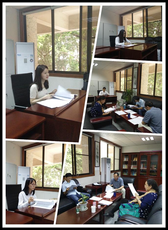 同学们到达教室后,积极填写表格,并将论文交与老师们审阅浏览。其后,二次答辩正式开始,每位同学先进行自我介绍,随后对自己的论文做简要概括,向老师们表达自己对论文的观点及意义。每位老师就论文的题目、内容等进行严格审阅,并展开了激烈的讨论,纠正同学们论文的不足之处,使论文变得更加完美。