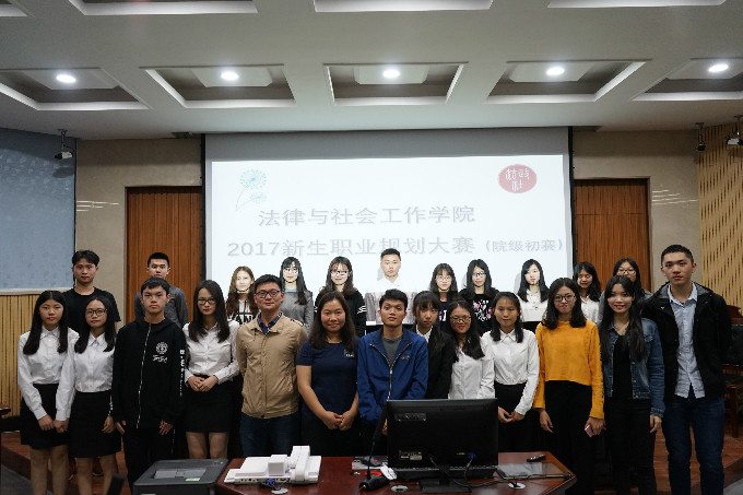 4月8日晚,为了更好地传播和普及职业规划理念,帮助公司2017级同学们学习和掌握职业规划的基本方法,williamhill威廉希尔在莞城校区模拟法庭举行了2017级新生职业规划大赛。莅临本次比赛的嘉宾有辅导员钟丽华老师、邱可荣老师、邹欢老师以及团总支常务副书记张喜劲、员工会主席陈慧聪、员工会秘书长朱倩仪,本次比赛的评委有职业协会的讲师李秋坤、张敏君、李国康。