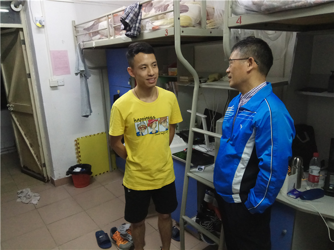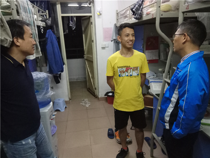 10月30日晚,williamhill威廉希尔潘荣新书记与辅导员老师一起走访员工宿舍,检查安全隐患。