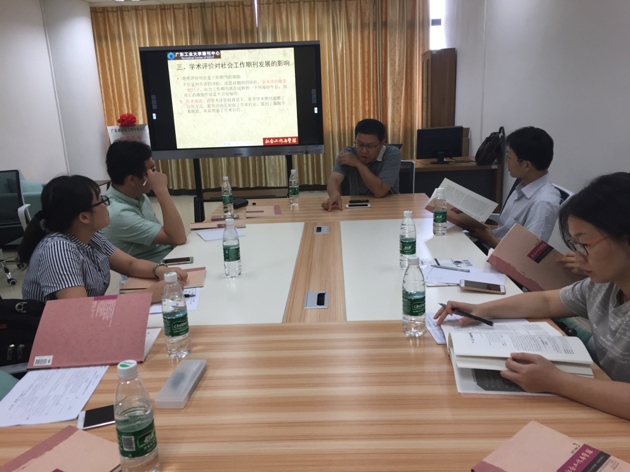 刘三林教授首先谈到学术评价对社会工作期刊发展的影响,他指出当前社会工作发展状况令人堪忧,社会工作专业期刊的发展更是不能令人满意。他认为社工专业的专家、老师应该充分发挥自己的优势,将社工专业做好做大,强调“有为才能有位”。接着他分析了社会治理、社会政策等当前的学术热点,传授了撰写和发表高质量科研论文的经验。他还介绍了学术期刊《社会工作与管理》的现状、当前社会工作学术要点。作为常务副主编,他觉得学术评价对该期刊具有规范与激励作用,他们力争在学术评价的氛围中,从“组好稿、挖专题、抓文稿质量、减文稿数量”这四个方面进行突破。