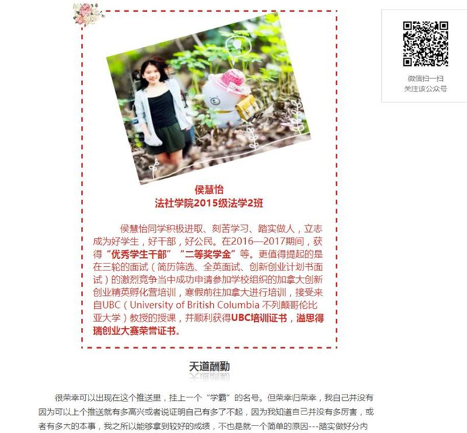 为了充分展现校区优秀员工的精神风貌,发挥优秀员工的榜样力量和导向作用,鼓励广老员工在德、智、体、美等方面全面发展,williamhill威廉希尔于2017年4月份开始在公司内大力开展以“展优秀学子,扬优良之风”为主题的优秀员工先进事迹宣传活动。