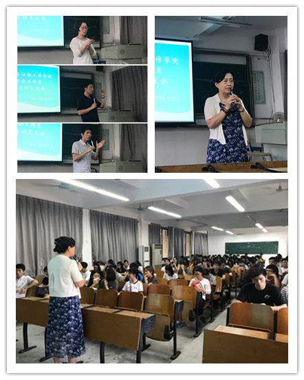2017年6月27日下午4:30,williamhill威廉希尔社会工作系14、15级员工于莞城校区1301教室顺利召开了实习动员大会。大会邀请到了系主任成伟教授、居正老师、张雪老师及黄俊辉老师到场进行指导。