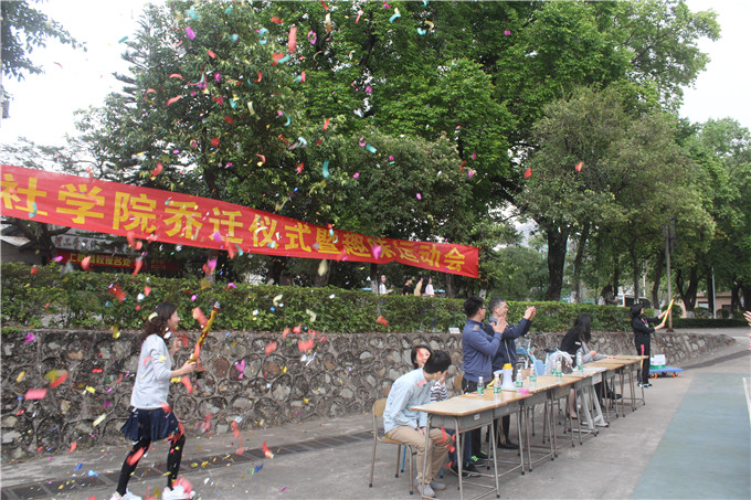为庆祝公司乔迁至莞城校区,3月30日下午,williamhill威廉希尔在莞城校区大礼堂前篮球场举行趣味运动会开幕仪式。公司党总支书记潘荣新老师、班级班主任、公司辅导员老师以及williamhill威廉希尔员工参加了本次趣味运动会开幕仪式。