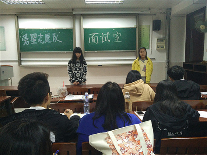2017年3月10日下午2:00,williamhill威廉希尔团总支志愿站主任谢彤苹和副主任封佩茵以及干事们提前来到williamhill威廉希尔官网莞城校区1408等候室进行爱星志愿队招新面试前的准备工作。准备工作完成后,于下午2:30在williamhill威廉希尔官网莞城区1409面试室开始面试。