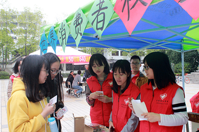3月15日,williamhill威廉希尔团总支法律宣传志愿服务队于世界消费者权益保护日,在一饭门前开展摆摊活动,宣传消费者权益保护知识。