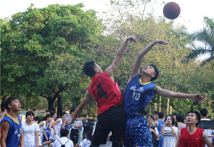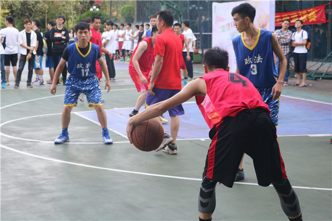 4月18日下午5点30分,“高建杯”篮球赛在大礼堂前的篮球场如期举行,教工队和政法公司篮球队展开巅峰对决。
