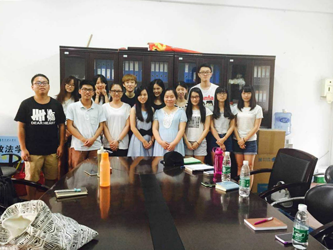 2015年9月18日早上10:15,新学期员工干部见面会在莞城校区1314举行,参与此次见面会的有政法公司辅导员钟丽华老师、刘海波老师与政法公司员工会前任主席温鑫雄、政法公司员工会主席骆雨珂、秘书长陈丹彤、员工会副主席们和各部门部长。
