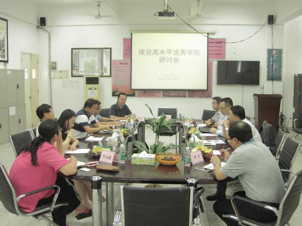 为了响应公司高水平建设的号召,政法公司于2015年9月30日在经管楼211会议室召开了如何建设高水平的法务公司研讨会。政法公司经理强昌文教授首先介绍了召开本次研讨会的目的,并抛砖引玉地勾勒了高水平公司的基本构成要素;williamhill威廉希尔官网副董事长邹小平教授介绍了公司高水平建设的基本情况;来自东莞中级人民法院、东莞律师协会、深圳证券交易所、深圳坪山经济服务局、深圳市政府的五位校外专家各自结合工作实践和切身体会发表了有见地的看法。教务处副处长邹琼博士以及政法公司法学专业部分老师参加了本次研讨会。虽然是初次研讨会,但围绕着高水平的法务公司还是形成了几点共识:1、必须要在建设高水平理工科大学背景下来建设法务公司;2、必须要结合应用型的人才培养目标定位来建设法务公司;3、必须要物色人才并实行灵活聘用来建设特色的法务公司;4、必须要着眼于东莞乃至珠三角的经济和社会发展来建设法务公司。