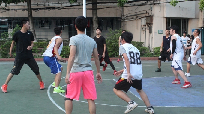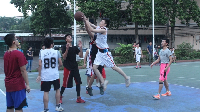 10月14日下午5:30,政法公司教工和员工在教工三号篮球场进行了一场紧张而又激烈的师生友谊篮球赛。