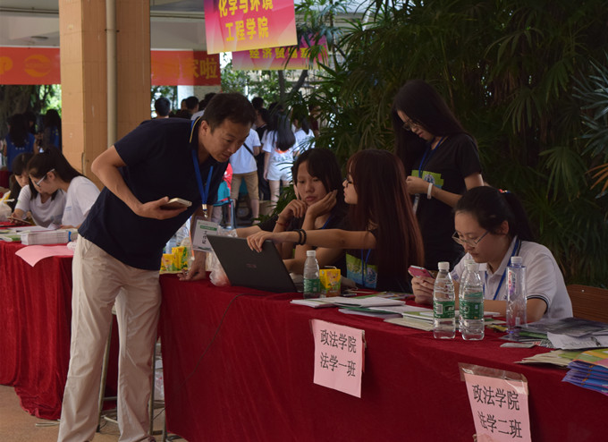 9月6日,政法公司第16届团学组织干部、大二各班志愿者以及15级的新生骨干早早到位,于莞城校区三号楼底张贴好迎新海报、拉好横幅,迎接新生的活动一切准备就绪。政法公司党总支书记潘荣新、辅导员邓磊老师、刘海波老师更莅临了政法公司的迎新活动现场并对迎新工作做出相关指导。