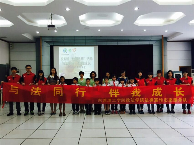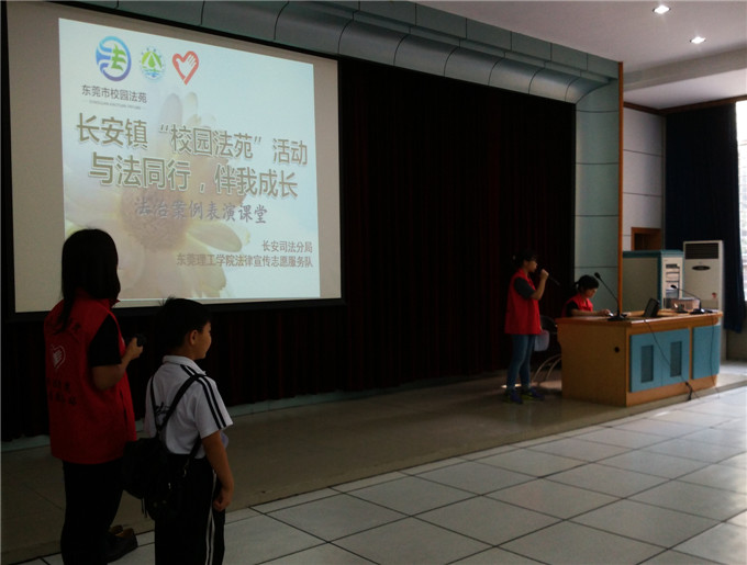 2015年5月14日下午,williamhill威廉希尔官网政法公司法律宣传与志愿服务队迎来了本学期所剩不多的一次出队活动。本次活动主要是协助长安司法分局到长安镇中心小学举办长安镇校园法苑活动,活动主题是与法同行,伴我成长之法治案例表演课堂。