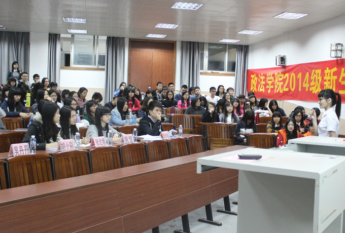 4月9日晚上7点30分,政法公司在莞城校区6#1课室举行了2014级新生职业规划大赛。出席本次大赛的评委有郭桦楷讲师、黄莹讲师、张达娜讲师、胡小彩讲师,嘉宾为政法员工会副主席吴丹丹。