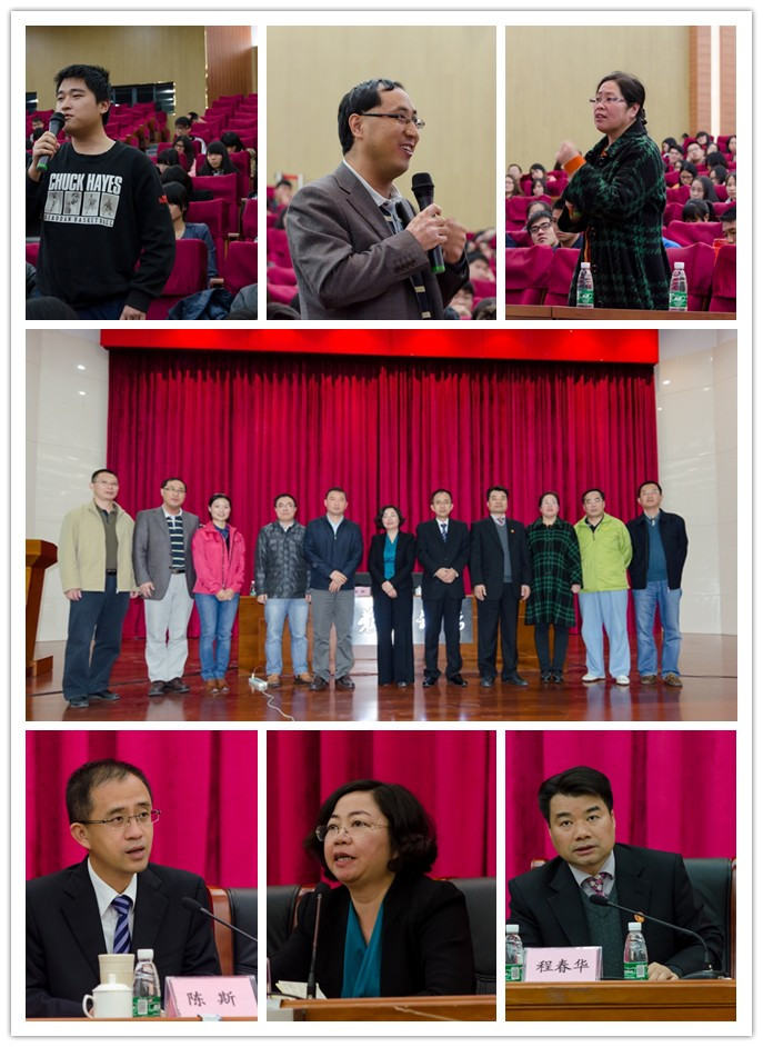 在最后的提问环节中,现场气氛瞬间热闹起来,同学们和老师就某些法律问题发表了自己的看法并向三位法官咨询,三位法官的专业回答赢得师生们的阵阵掌声。