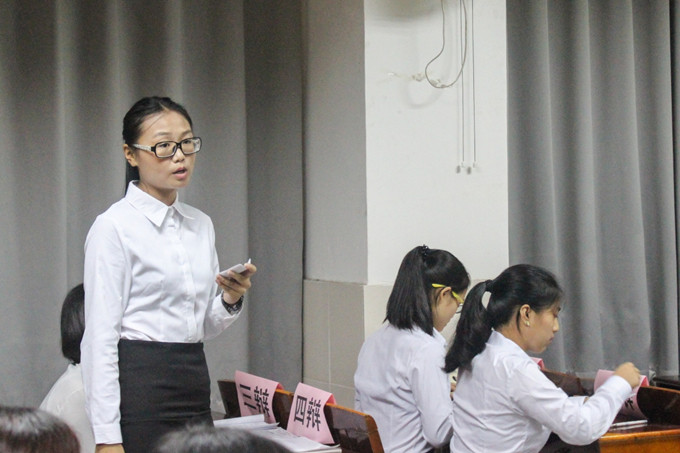 现辩论赛已进入复活赛阶段,本轮将决出3支优胜队伍连同上一轮胜出的五支劲旅进入下一轮的半决赛。比赛评委由政法公司辩论队队员担任。