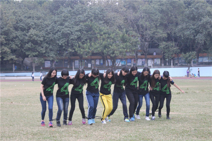 随着裁判一声哨响,趣味运动会项目正式开始。竞赛中同学们手挽着手、肩并着肩,脚并着脚走,以保持平衡。那些相互依靠的背影,坚定向前的步伐,还有那铿锵有力的口号,构成了一道道靓丽的风景线。起初,各支队伍旗鼓相当,毫不示弱。往后,有的队伍决定改变策略,采取大步跃进的方式;有的则是稳中求进,竭尽全力冲向终点。最后,凭借出色的发挥,社工2班击败其他班级参赛选手,取得了胜利。