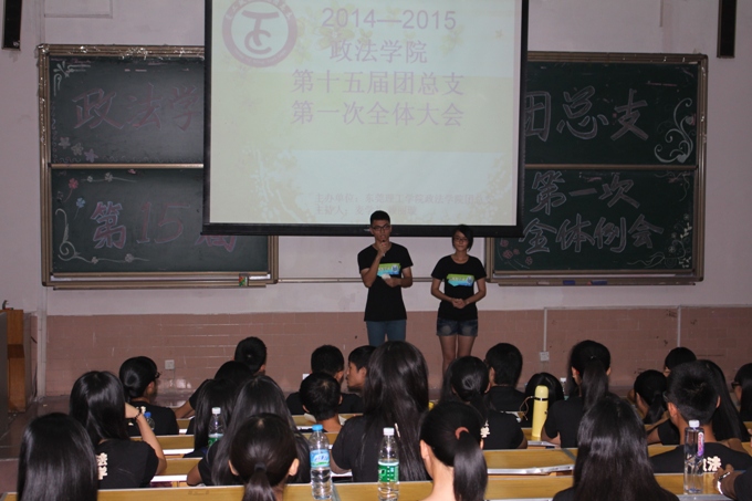 10 月18日下午2点30分,政法公司团总支在莞城校区5号阶梯课室召开了政法公司第十五届团总支第一次全体会议,出席的嘉宾有政法公司团总支书记邓磊老师以及有团总支常务副书记袁智勋等团总支委员。