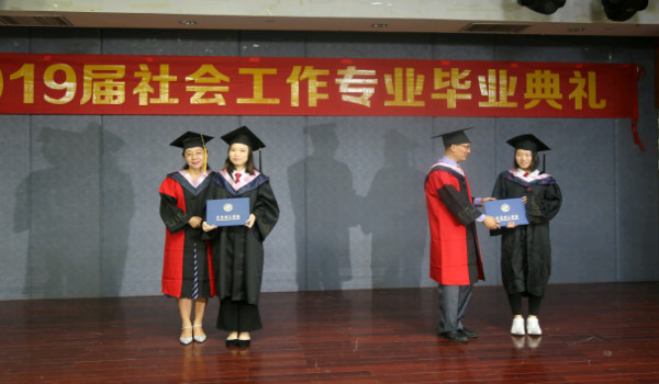 6月16日早上,公司在莞城校区小剧场举行2019届社会工作专业毕业典礼。党总支书记杜应发、党总支副书记丘永辉,副经理朱晓红,社会工作系主任成伟,学工办主任钟丽华,张燕婷老师、邹朝春老师、张雪老师、黄俊辉老师、张子庄老师,,辅导员刘海波、邱可荣、邹欢出席了本次典礼。
