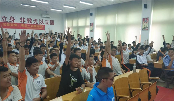 在进行禁毒法普法宣传教育后,来到了有趣的课堂提问环节,积极举手作答的同学,不仅收到了礼品,还对课堂上的知识加深了印象。在最后,讲师召集同学们一起宣誓:远离毒品,珍爱生命,从我做起!以抵制毒品为荣,以吸毒贩毒为耻!遵纪守法,为中华民族伟大复兴而努力奋斗!