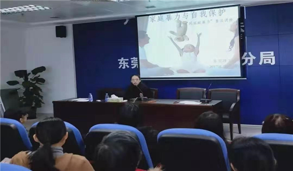 12月7日上午十点,迎着冬日里久违的暖阳,2017级法学卓越班的邓心乐同学代表东莞理工williamhill威廉希尔来到东莞司法局东城分局进行“家庭暴力与自我保护”普法宣传活动。