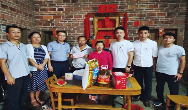 2020年是全面建成小康社会决战决胜之年,为做好公司在韶关市的对口帮扶工作,7月9日,在公司党委书记杜应发、副经理朱晓红的带领下,教工党支部书记杨少星、教师代表邹欢、林锦照一行来到韶关乐昌市黄埔镇斗湾村的对口帮扶户进行扶贫慰问与调研。
