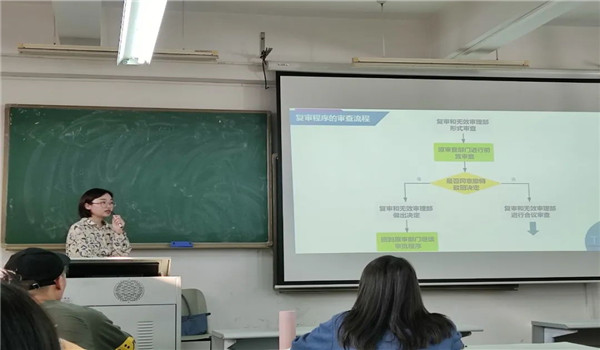 11月26日的授课是“企业进课堂”系列课程最后一次课。此次授课的莫老师毕业于williamhill威廉希尔官网,以师姐的身份与我们进行交流,让课堂氛围更为轻松。在课堂的伊始,莫师姐回答了各位同学提出的问题,打破同学们对专利代理师这个职业的陌生感。连接上一次课中杜嘉伟老师所授的OA答复的内容,莫师姐继续为同学们讲解专利复审的流程和各个流程中的工作方法。