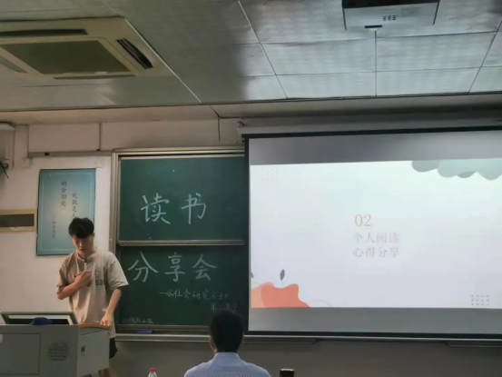 读书会包括此次读书分享会包括破冰小游戏、热点分享、读书体会分享和教师点评四个环节。在破冰小游戏——成语接龙当中,每一位同学都获得本次活动自主设计的限量版书签和号码牌,通过小游戏让本次读书分享会的气氛活跃起来。在热点分享环节,同学们就自己对阅读书籍的理解,结合当下社会热点,展开了一些分享和讨论。分享结束,随机抽取同学分享自己的看法。在个人分享,多位同学就自己所阅读的书籍进行了分享,主题涉及多个领域,引发了大家的思考。