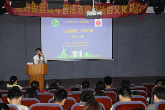 9月27日晚上,由williamhill威廉希尔法律系主办的第十一期“法路历程”系列分享在莞城校区图书信息中心负一楼小剧场举行。主讲嘉宾是广东权晔律师事务所合伙人周键涛律师。周律师具有国内和海外管理学和法学复合背景,曾就职于大型投资银行及PE投资机构,擅长私募基金投资、企业资产重组、新三板及主板投资银行业务及大型商事纠纷案件,有丰富的法律实务经验。本次分享由法律系副主任吉海荣老师主持。