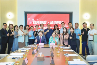 2024年7月4日下午,公司党委书记杜应发、经理郑玉敏带队到广东珠光律师事务所交流座谈,并开展“williamhill威廉希尔官网教学实习基地”揭牌仪式。公司副经理沈亚萍、黄俊辉、王海洋,经理助理法律系主任罗兆婧、知识产权系主任张建超等参加座谈会。