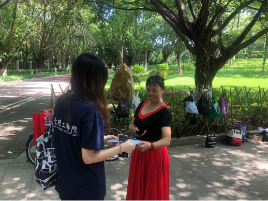 由于疫情的影响,暑假期间,团队成员无法在广州和深圳两市开展实地调研。为顺利推进本项目的实施,团队成员积极整合利用线上资源,充分做好项目调研和构思工作,助力项目稳定推进。团队成员对很多高新技术企业展开了线上“云调研”,深入分析知识产权纠纷多元化解决机制发展现状与存在问题,并就此提出切实可行的完善建议。在做好疫情防控的措施的前提下,团队成员于2021年7月8日前往人流量较大的东莞市旗峰公园,对普通民众进行广泛调研。