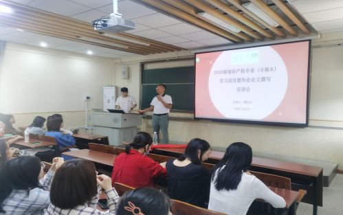 2021年10月27日下午四点,2020届知识产权运营与管理专业实习动员暨毕业论文撰写宣讲会在3309召开。法律与知识产权教师党支部书记、知识产权系系主任龚红兵老师出席了本次会议,公司2022届知识产权专业毕业生参加会议。