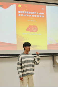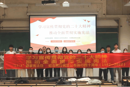 2022年12月9日下午,21级知识产权班开展了以“学习宣传贯彻党的二十大精神,推动全面贯彻实施宪法”的“12.4”宪法宣传日活动,该会议由班长曹颖主持,全班同学和班主任龚红兵老师共同参与。